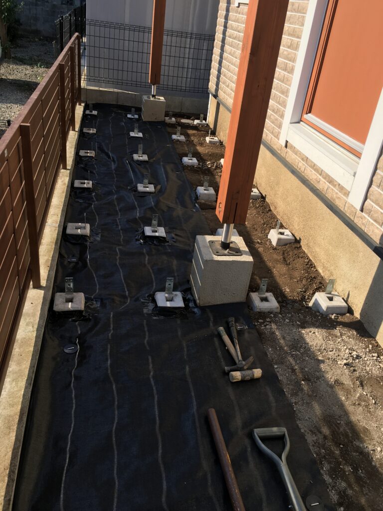 防草シート設置。ボコボコだけど